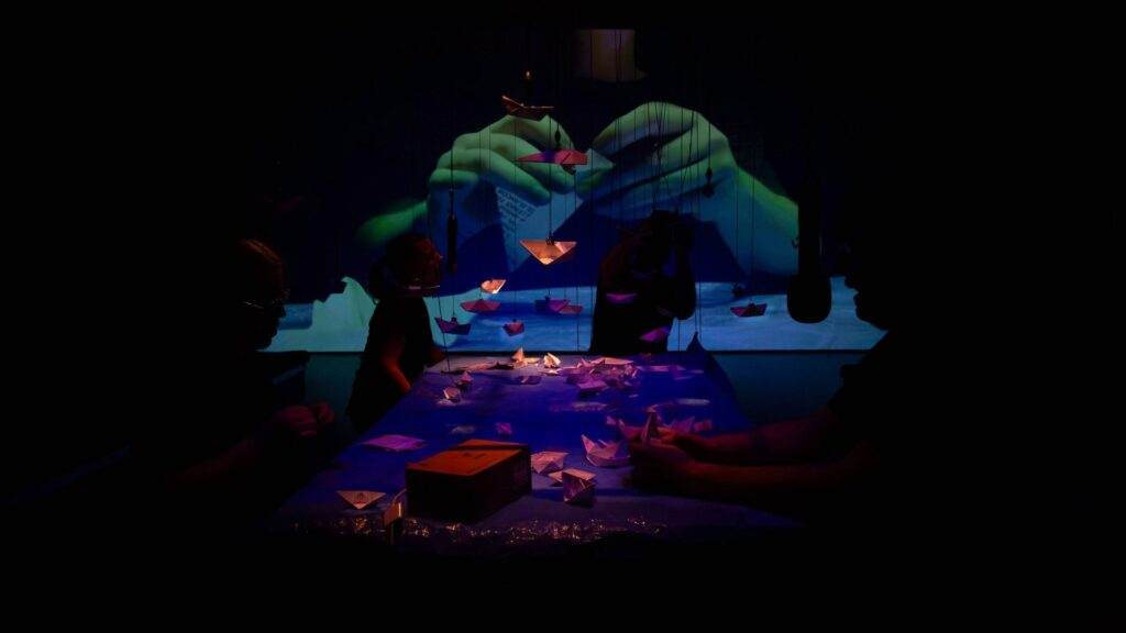 RESEÑA: Imaginamos una barcaza con veinticinco persones mar adentro, tan adentro que no se pueden ver ni las costas, ni los límites de la tierra, solo mar, mar y noche, mar y horizonte, mar y distancia.